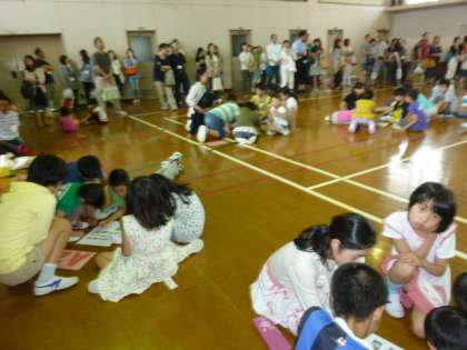 今日、6月7日は、休日参観でした。朝の登校では、にこにこしながらの顔がいっぱいでした。8時20分までにほとんどの子どもたちが登校してきました。うきうきです。1・2校時は、教室での授業、3校時は、なかよし集会で体育館に集まりました。全校で練習している「あいうえおうた」を発表したり、♪「お陽さまになって」♪を合唱したりしました。絵本「となりのたぬき」のお話を聞いて、縦割りグループで集まって「友達と仲良くすること」について考えました。子どもたちの感想発表の後、保護者の方からも感想を言っていただきました。ありがとうございました。仲良くするために一人一人ができること、そしてそれを実行していけることなどを考え、大切な時間になりました。たくさんの保護者の方々や地域の方々にご来校いただき本当にありがとうございました。ご家庭でも話題になることと思います。6月9日は代休日です。