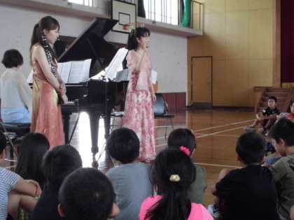 今日は,北文化会館から,ピアノとソプラノ,そしてクラリネットの演奏をしに来ていただきました。3年生の教科書にも載っている「ドレミの歌」や「富士山」を歌ってくださったり,今はやりの「ありのままで」を歌ってくださったりしました。