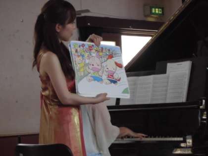 また,運動会でおなじみの「天国と地獄」は,ネコさんといぬさんのかけっこ競争の紙芝居を見せてくださり,子ども達にワクワク感をもたせながらピアノでの演奏を聴かせてくださいました。