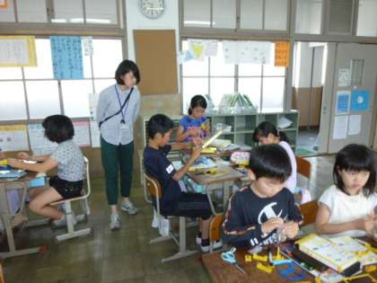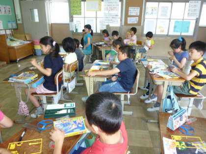 4年のどちらのクラスも必死になって組み立てていました。興味津々の実験です。真剣な顔!