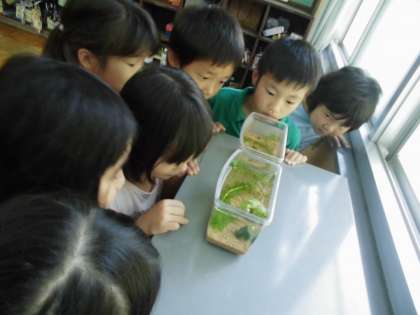 1年生の教室にメダカをわけていただきました。
