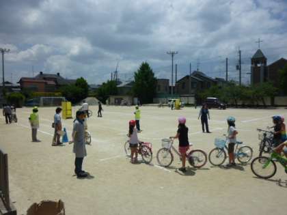今年も、北警察署の方や地域の交通支援員さんや育友会の方々にお世話になり自転車教室を実施することができました。とても暑い日でしたが4年・3年みんな真剣にやっていました。昨年よりも貸してくれる自転車の数が多くなり、スムーズに進めることができました。また、たくさんの育友会の方々にご協力いただき本当にありがとうございました。「安全第一」気を付けて乗ってほしいと思います。みなさんありがとうございました。