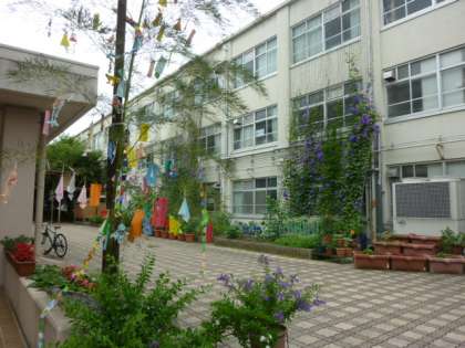 学校の玄関に大きな笹飾りができています。昨日、地域のお年寄りの方々と1年生が交流をして作りました。1年生のお願い事が風にひらひらと揺れています。紫明の社会福祉協議会の皆様がた、この行事にご協力いただきましてありがとうございました。1年生一人一人が自分の笹を持って帰ることができました。短冊の願い事が叶いますように!