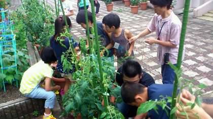 その後,一人一人いただいたトマトの脇芽を取って,追肥をして水をやりました。自分の育てたトマトが元気良く育ってほしいと願いながら世話をすることができていました。