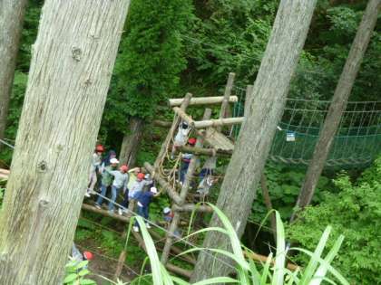 アイスブレイクを変更して、さきに冒険の森へ!アスレティックに挑戦しました。声を掛け合いながら、汗をいっぱいかいて何度も何度もがんばっていました。最後に少し雨がパラパラしてきました。「おもしろい、おもしろい。」と言っていました。