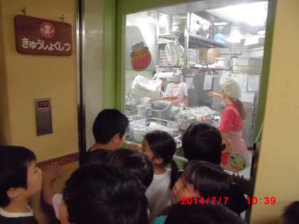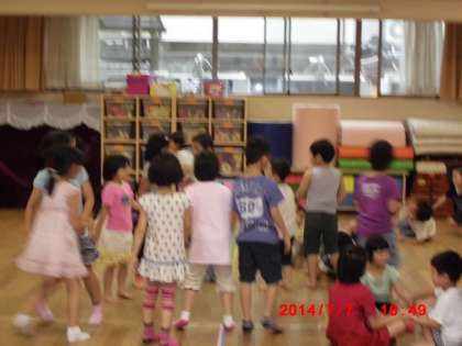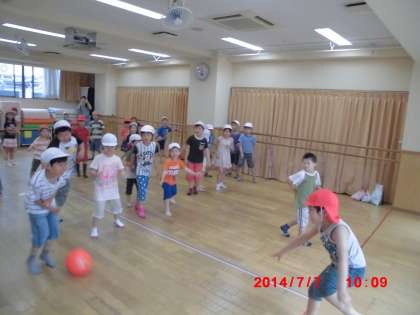 上総幼児園に行ってきました!年長組さんとドッヂボールをしました。それから園長先生に,園内を案内していただきました。ちょうど赤ちゃんが離乳食を食べているところも見られました。「かわいい」と,子どもたちも目がハートになっていました。