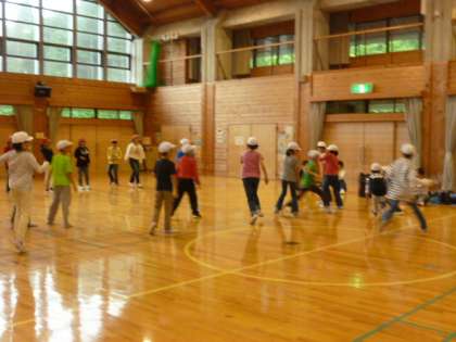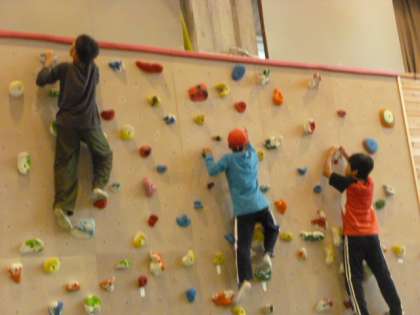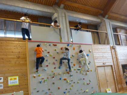 午後からは、ボルダリングに挑戦しました。そして、ドッジビーもしました。大きな体育館でいっぱいのエネルギーを発散しています。