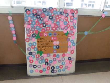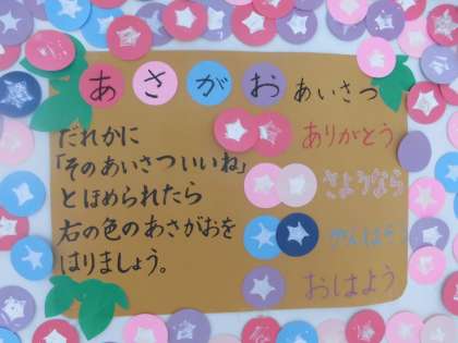 の4つのあいさつを,「そのあいさついいね!」とほめられたら,あさがおを貼っていくというものです。