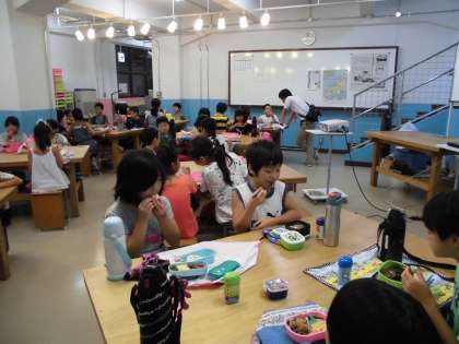 モノづくりについて学習した後は,みんなでお弁当を食べました。お腹がすいていたのかすぐに食べ終わりました。その間に,作ったLEDについて話す様子も見られました。