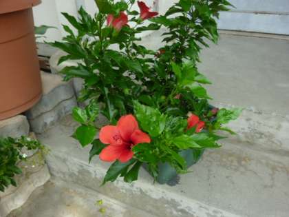 きれいな花が植木鉢いっぱいに元気よく咲いていました。子どもたちが早く学校に来ないかな?と待ってくれているようです。