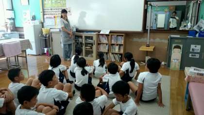 身長と体重を測る前に,日置先生に歯磨きの大切さについて,話をしていただきました。