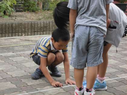 学んだことを使って,10秒間で歩く距離を測りました。ストップウォッチと巻尺を使って,測りました。・・・それって「歩く」かな?というスピードの人もいました。「普通に歩く速さ」って意識すると難しいものなんですね。