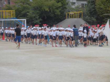 今日は、運動会に向けての全校練習を行いました。天気を気にしながらの練習でしたが、入場行進、開・閉会式、玉入れ、綱引き等の練習を行いました。
