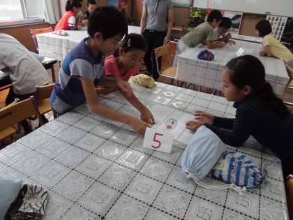 ランチルームで食べ物のはたらきについて学習しました。食べ物をそれぞれのはたらきごとにグループ分けをしました。