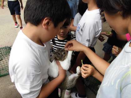 中間休みにうさぎとのふれあい広場を開いてくれました。