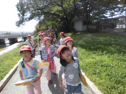 生活科の学習で,秋の自然を見つけに賀茂川に行きました。