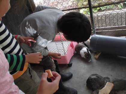 生活科の学習で,ウサギの健康観察をしています。