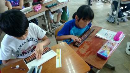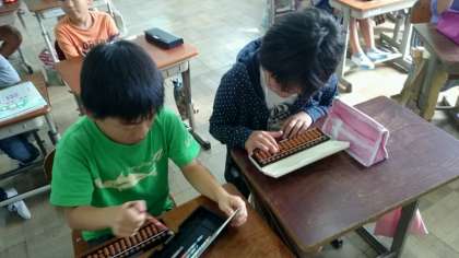 そろばんの練習は位取りの練習にもなります。繰り上がりや繰り下がりなども視覚的に理解できます。数のしくみの学習の復習に楽しくできる学習として貴重だなと感じています。