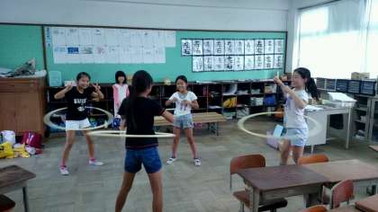 放課後にフラフープでどれだけの時間をまわしていれるか記録に挑戦しています。どんどんと記録が伸び、今や20分をこしました。