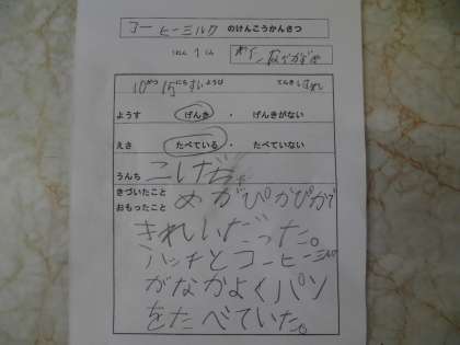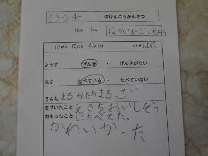 子どもたちの書いた,ウサギの健康観察カードです!