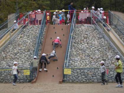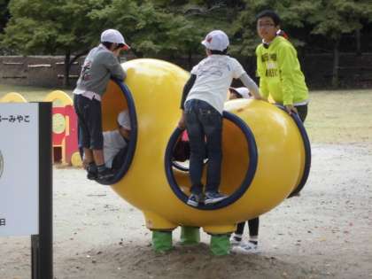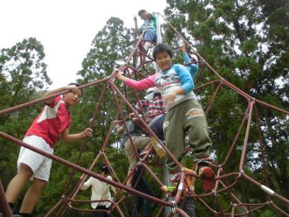 紅葉したきれいな木々がたくさんあるのが,ゴールの「宝ヶ池子どもの楽園」です。小雨が降ったし,遊具で遊べないかも・・・。という心配は無用でした。子ども達は,めったにない大きな遊具や,楽しい遊具で思い切り遊ぶことができました。