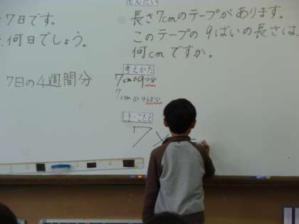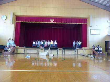 ちょっと前の様子になりますが。学芸会の練習で大きな船が登場してきました。大きな声が出ています。2年生では、九九の学習が進んでいます。どんどん合格できるように練習しましょう。ノートもしっかりと書けるようになってきています。
