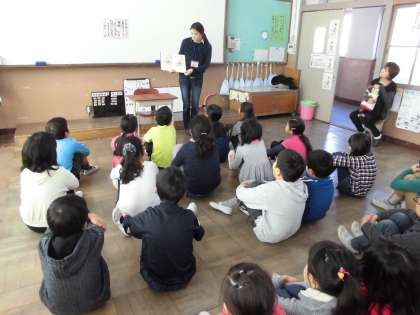 今日は読み聞かせをしていただきました。子どもたちは,ページをめくるたびに笑ったりびっくりしたりしていました。お話の中に入り込んでいるようでした。