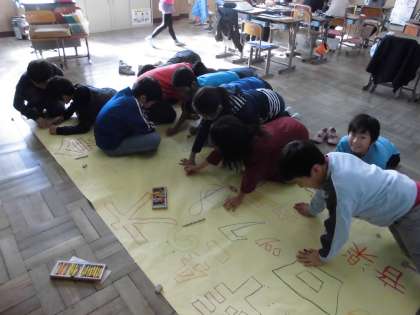 学芸会に向けて看板を作っています。