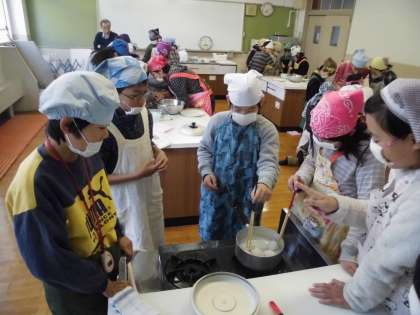 今日は,調理実習をしました。班の中でゆでる時間を変え,固まり方をみました。一人一人好みの固まり方があるようで,自分のたまごを大事に,ゆでていました。黄身がかたよらないように,ふっとうするまでたまごを転がしたり,殻をむきやすいようにゆでた後は水で冷やしたり。一つ一つの作業を,丁寧に考えながら進めることができました。