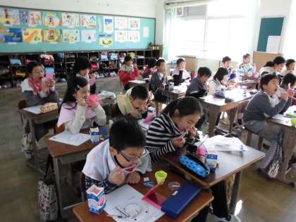 教えてもらったことを活かして歯磨きタイム。みんな真剣でした。家に帰っても続けていきましょう。