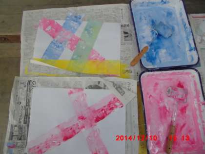 今日は台紙を印刷しました。思い思いにローラーで仕上げました。