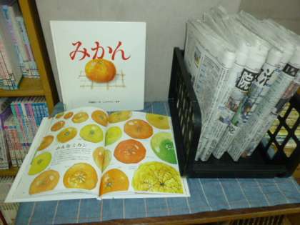 図書室の中を紹介します。江戸しぐさのコーナーやクリスマスのコーナーがありました。そして、冬といったら、「みかん」のコーナーもありました。12月ですね。4月からどれくらい本を読んでいるのか、一人1冊ずつ持っている「読書ノート」を見ていただき、話題にしていただきますようにお願いします。冬休みもどんどん読みましょう。