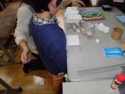 放課後まなび教室では、毎年、お楽しみ会を行っています。今年は、オリジナルの「しおり」と「マスク」を作りました。参加した児童は、工夫をしながら自分だけの作品を仕上げていました。
