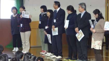 ずらりと前に並んだ先生が一人一人カードを出すと、笑顔になり、声がいっぱい体育館に広がりました。楽しい英語との出会いになりました。何より先生たちの笑顔も最高でした。校舎の中にも掲示していきますが、これからの朝会にも繰り返しカードを見せていきたいと思います。おうちでも復習してくれているかもしれませんね。今年も楽しい朝会を考えていきたいと思います。