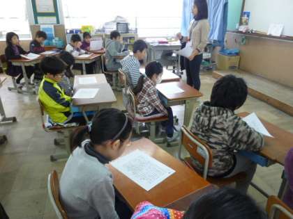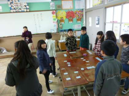 3年の教室からは百人一首の声が聞こえてきました。お気に入り「この札だけは覚えてるんだ!」と目を輝かせて「はい!」と札をとっている子もいました。スミレ教室の大きなテーブルを使って毎週木曜日の休み時間に自由参加ですが、「百人一首タイム」をしています。たくさん覚えてほしいものです。
