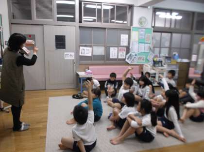 そこで,発育測定前に,むし歯予防に関わるだ液についてとともに,インフルエンザ予防のための「あいうべ体操」について指導しています。