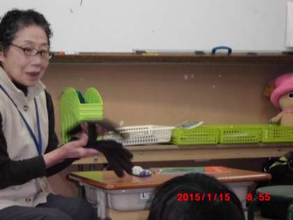 てぶくろろくすけは,てぶくろ社会の厳しさや家族愛に触れることができました。実際にてぶくろを持ってきて見せてくださいました。
