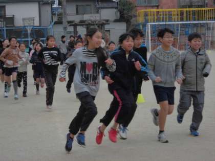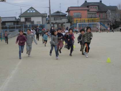 外はとっても寒いですが、子どもたちはがんばって走っています。