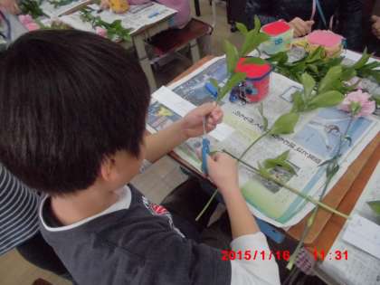 「はないく活動楽しかったです。ななめにさしたりして,いろいろな花をかざれたので好きになりました。」