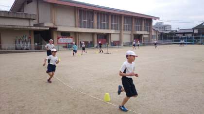 体育の時間に7分間走をしています。自分のペースでもくもくと走ります。こういうときに怠けず一生懸命取り組む子どもばかりで素晴らしいなと思います。