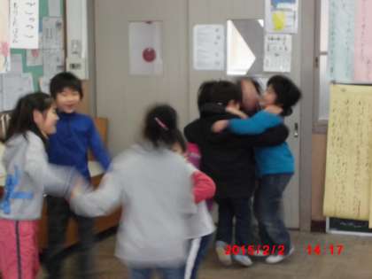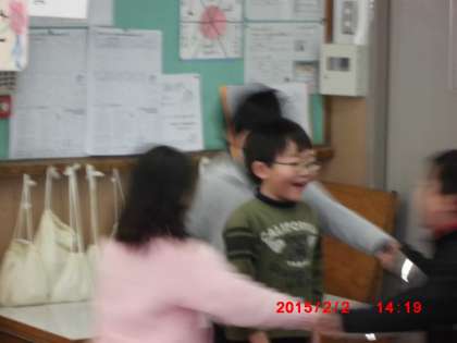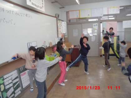 音楽の授業でノリノリのリズムにのって踊りました。