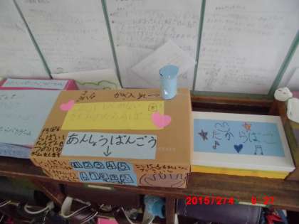 教室の後ろのかわいい思い出たちに,前担任も「かわいい!!」と喜んでおりました。