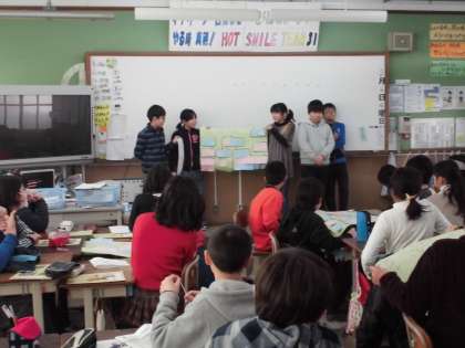 交流のあとには,グループごとに目標を立て,発表しました。どの班もしっかりと発表ができ,お互いの意見をよく聞いていました。ぜひ,これから生活の中で生かしてほしいと思います。