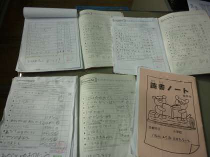 4月に一人1冊読書ノートが配られています。どんな本をいつ頃読み終えたのか、記録していくものです。1年生から持っています。また後ろのページには、感想を書くところもあります。1月末までの全校児童のノートを今見ています。一人一人の個性が表れています。書き忘れているのか日付がとんでいる子や春に読んでいたのをもう一度冬になってから読んでいる子やこつこつ続けて用紙が足らなくなって、のりで貼り足している子などいろいろです。高学年になれば1冊のページ数も多くなりますので、冊数がどんどん増えていくとは限りません。けれど、読み終えた日付がずっとつながっているなと思えるノートを見るとホッとします。読書は心の栄養です。「卒業までに紫明小学校にある本は全部読んでしまう!」のつもりで読んでほしいなと思います。どんなふうに記録しているのかご家庭でも目を通していただき、子ども達への声掛けをお願いします。