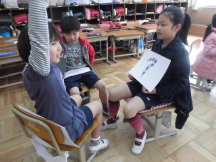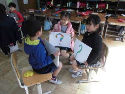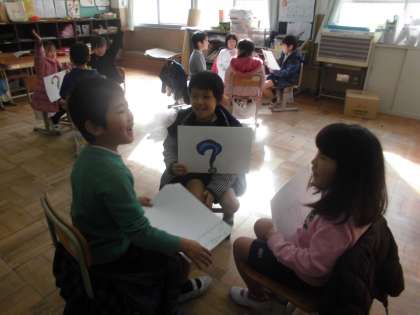 「大きな口をしています。」「仲間が○人います。」など,身近にあるものの特徴をとらえ,ヒントを考えました。