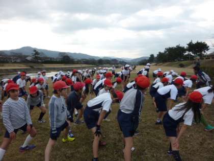 朝から雪がふっていました。4度目の正直!3年生の適応マラソン大会を行いました。4年生も一緒に走ってくれました。現地に着くと雪もなく、少し道はぬれている状態でしたが走りきることができました。スタートと同時に保護者の方々がそれぞれの応援の場所に急いで移動。またゴールの時には急いでゴール地点へ。本当にありがたかったです。泥はねで紺パンは、汚れていましたが頑張った「あかし!」だと思います。やっとこれで今年度の適応マラソン大会を終えることができました。ありがとうございました。