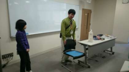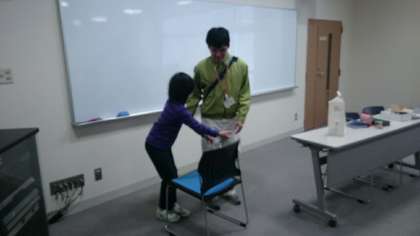 視覚障がいの方は,椅子がどっちの方向を向いているかが分からないので,背もたれを教えてもらうと助かるとおっしゃっておられました。