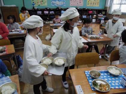 「給食調理員さん,いただきます!」と元気にあいさつができました。