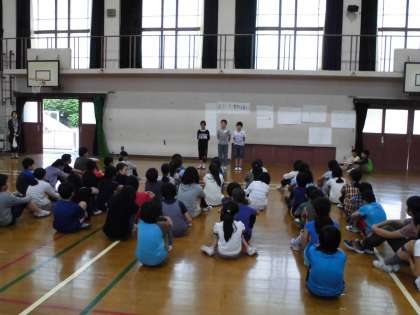 子どもたちは,山の家をとても楽しみにしています。今日は,元町小学校の友達が紫明小学校に来てくれました。「前みたいにドッジボールがしたいな。」,「今日は違う遊びがしたいな。」という声が聞こえてきましたが,今日はグループごとにはじめての顔合わせです。グループのみんなでめあてを決めたり,自己紹介をしていました。その後は,キャンプファイヤーの練習をしました。緊張していた顔も少しずつ綻んでいっていました。次に会えるのは,当日です!早く会いたいですね!