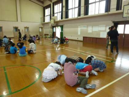5年生は、6月16日から3泊4日の予定で花背山の家の宿泊学習に出かけます。元町小学校と一緒の活動です。事前交流に、元町小学校の5年生が紫明小学校にやってきました。自己紹介をしたり、役割を決めたり、キャンプファイヤーの練習をしたりしていました。山での活動楽しみです。
